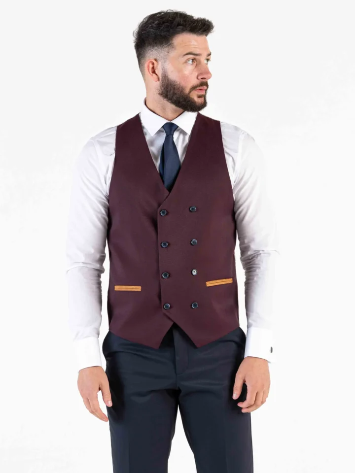 Burgundy waistcoat with adjustable straps for a personalised fit