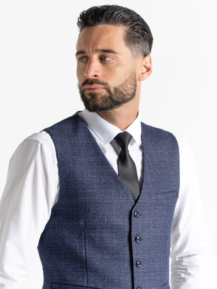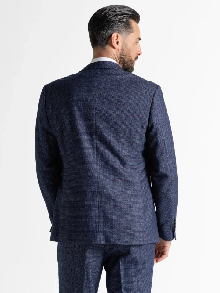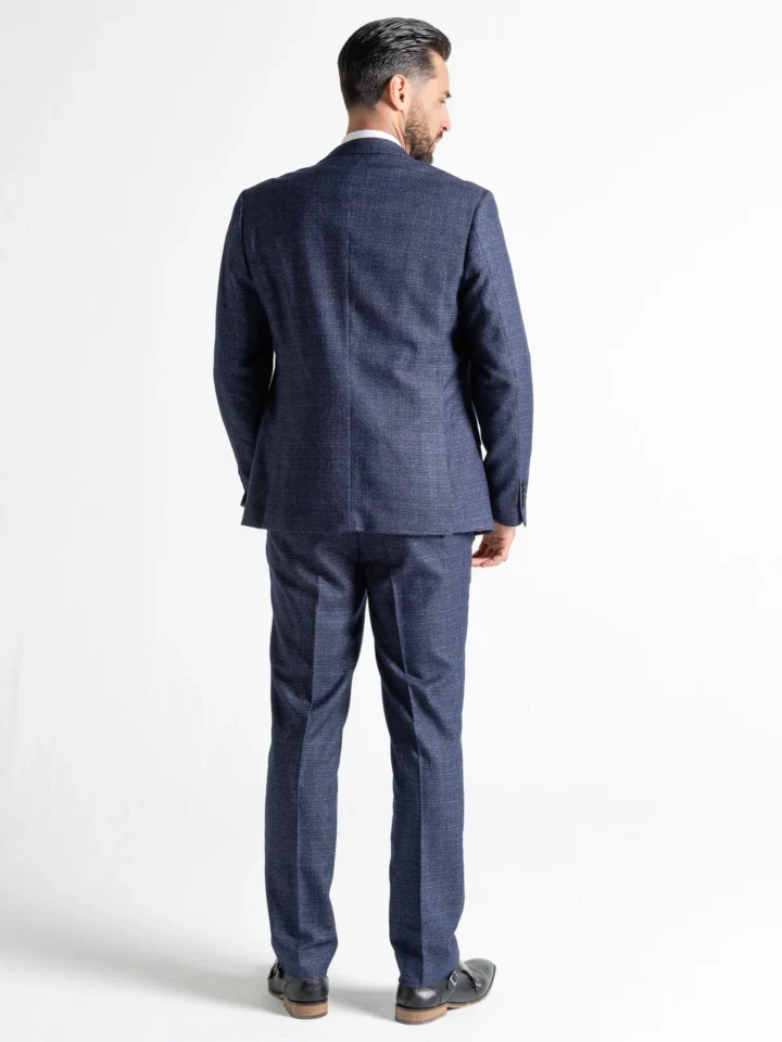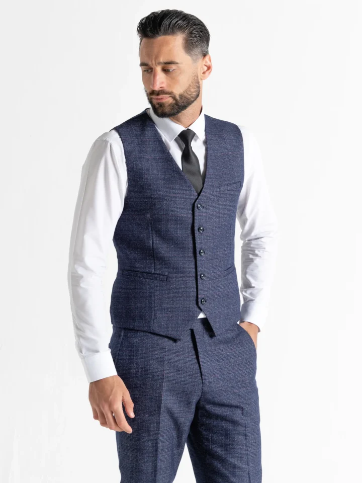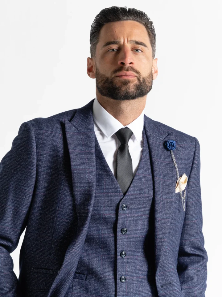 The Charles suit brings timeless elegance with a modern twist, featuring a textured blue tweed fabric that adds depth and character. Expertly tailored for a seamless, contemporary slim fit, the single-breasted blazer is perfectly matched with a refined waistcoat and sharply cut trousers. The waistcoat’s adjustable back ensures a personalised fit, while the tapered trousers provide a clean, sophisticated silhouette.