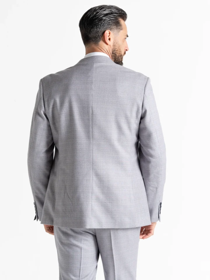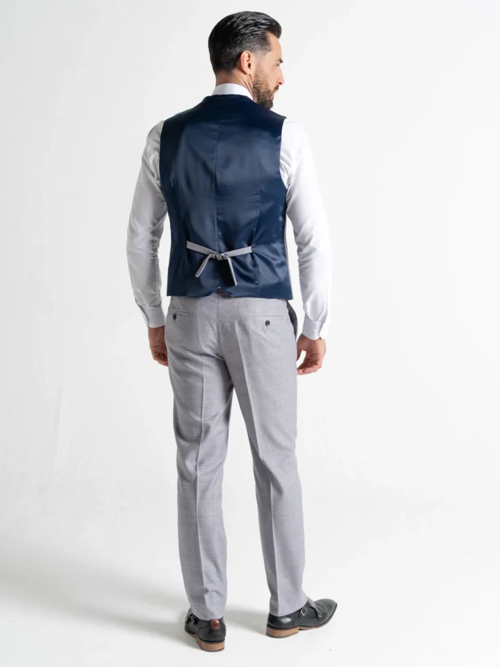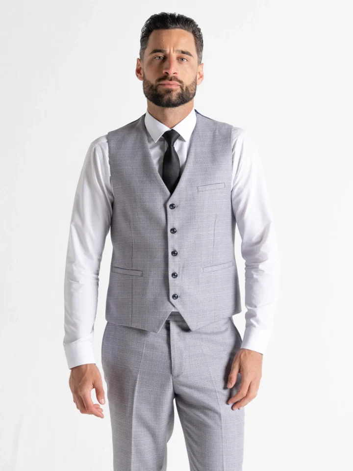 The Charles suit brings timeless elegance with a modern twist, featuring a soft tweed fabric in light grey for a refined yet contemporary look. Expertly tailored for a seamless, contemporary slim fit, the single-breasted blazer is perfectly matched with a refined waistcoat and sharply cut trousers. The waistcoat’s adjustable back ensures a personalised fit, while the tapered trousers provide a clean, sophisticated silhouette.
