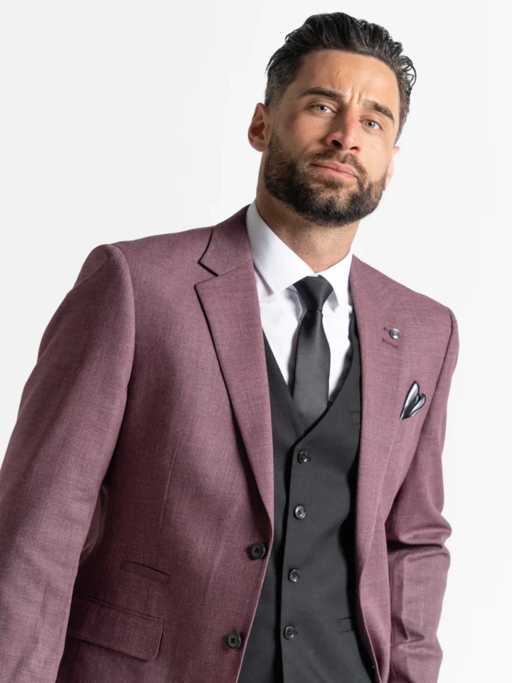 This unique colour combination makes the Lilac and Black suit a versatile choice that stands apart from traditional formalwear, while still maintaining timeless elegance. Whether paired with crisp white shirts or more adventurous patterns and textures, this suit empowers you to make a confident and memorable impression.