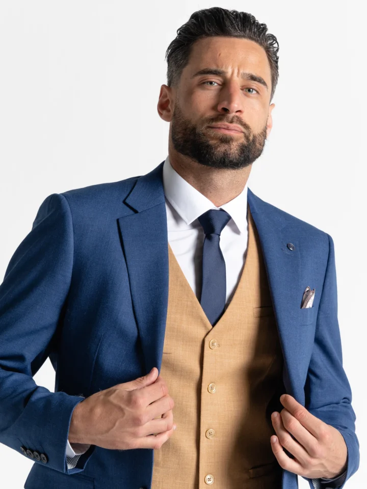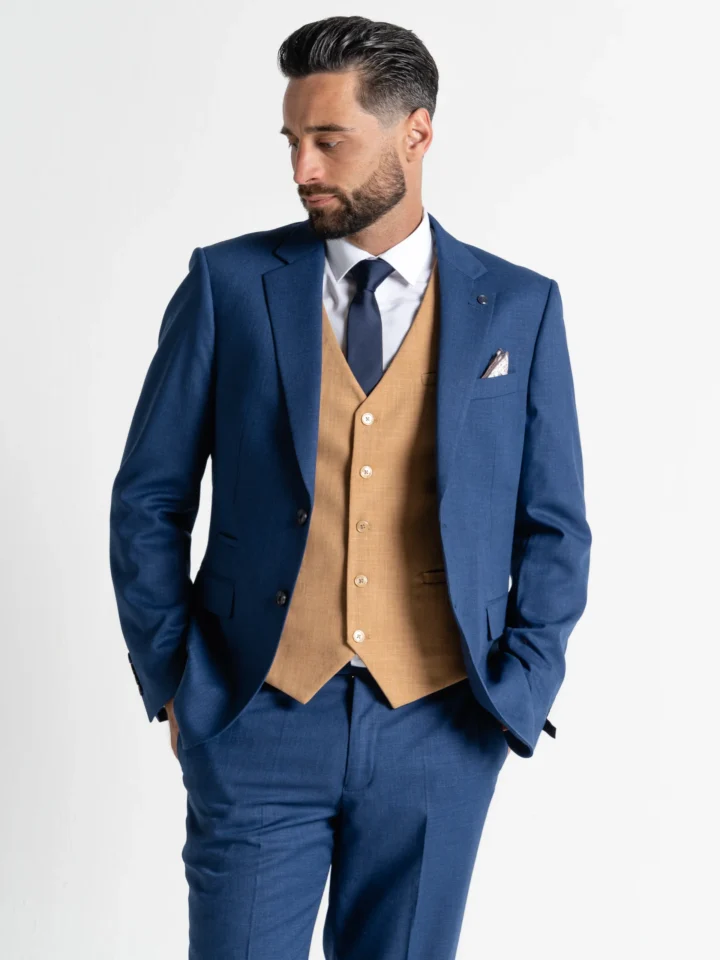 Charlie – Royal Blue Jacket With Camel Waistcoat
