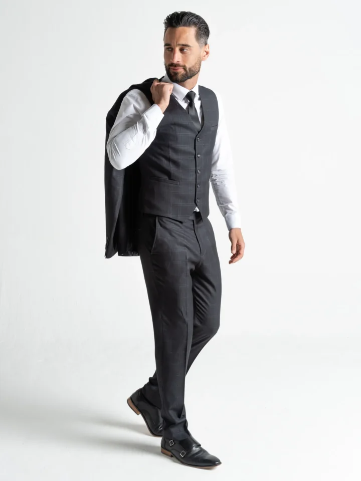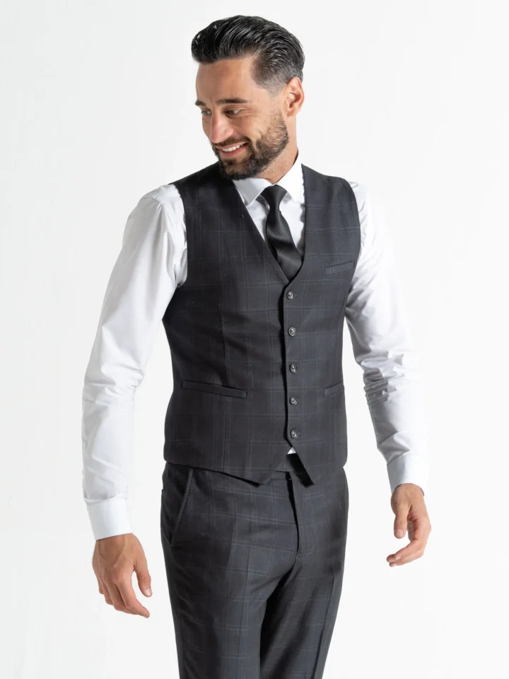 Exude quiet confidence with the Chelsea Charcoal with Light Grey Checks suit—a masterclass in understated style. The deep charcoal base delivers timeless sophistication, while the light grey check pattern adds refined texture and visual interest without overpowering your look.