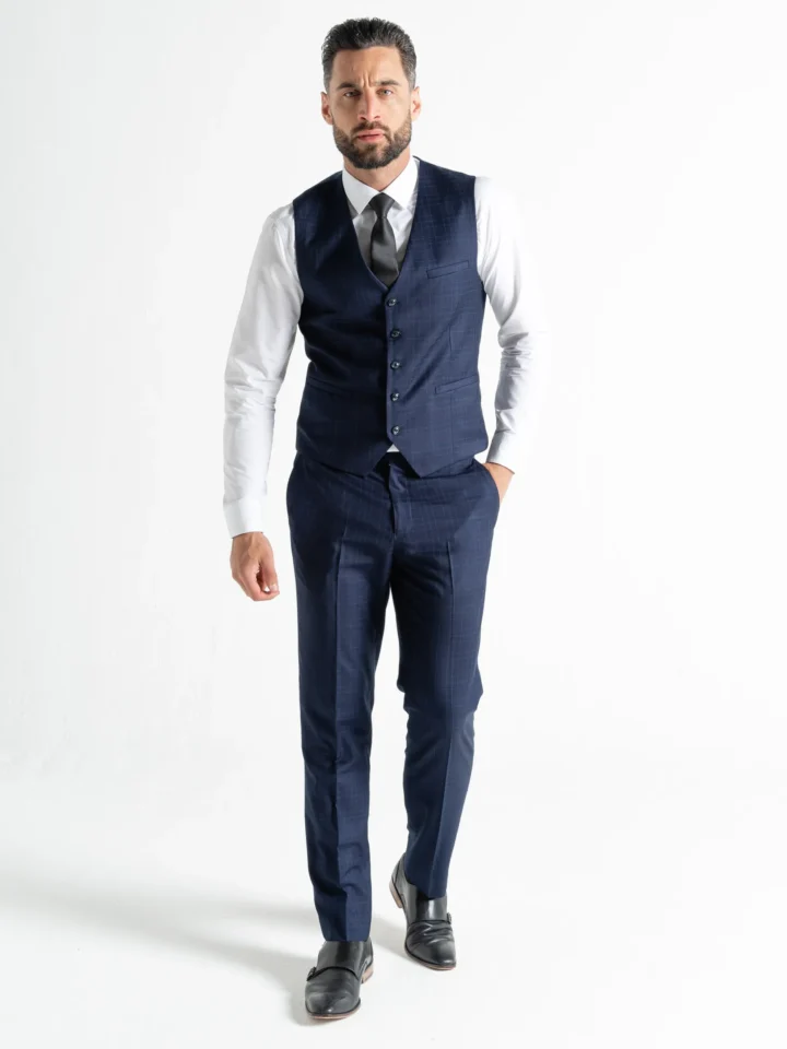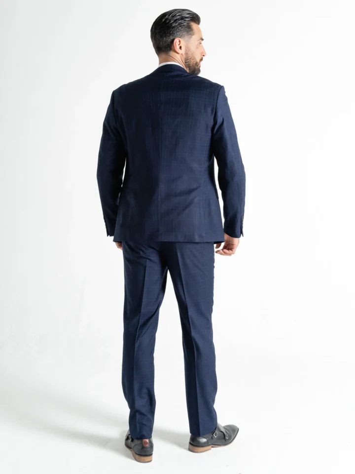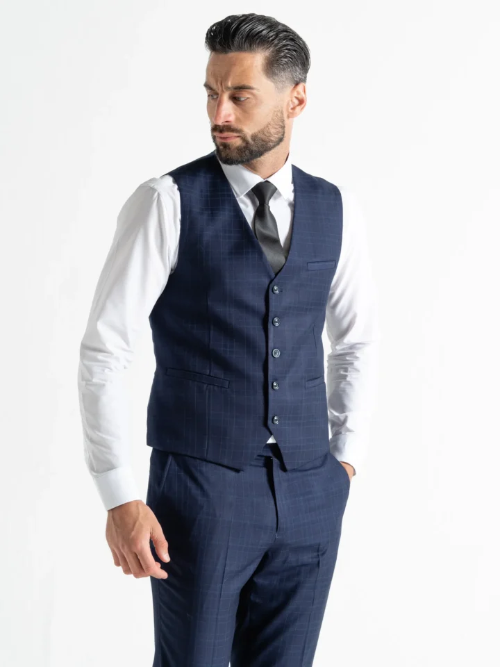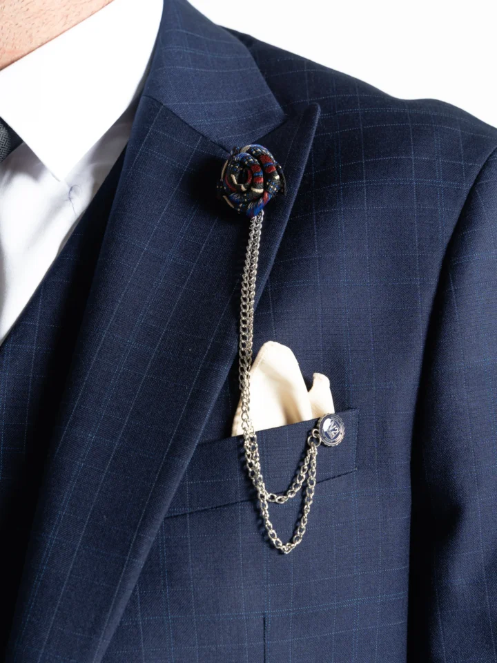Stand out with refined confidence in the Chelsea Deep Blue with Light Blue Checks suit. The rich deep blue base sets a striking stage for the subtle yet distinctive light blue check pattern, delivering a look that’s both contemporary and timeless.