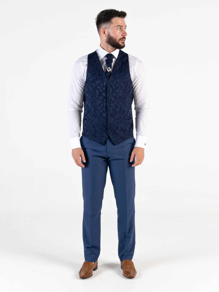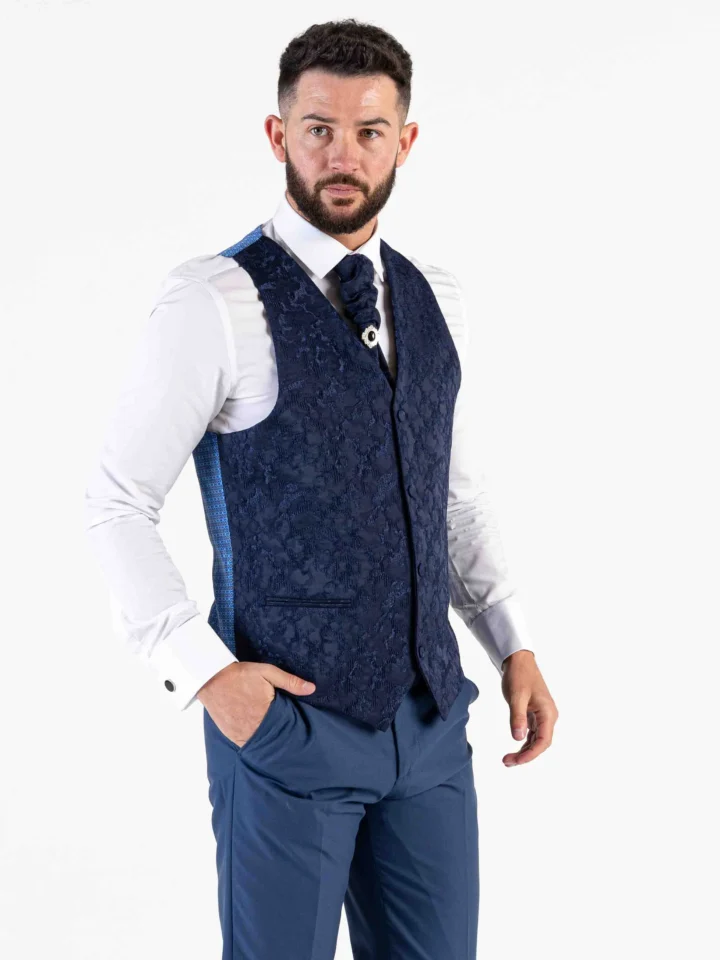 Make party dressing easy with this classic. An elegant look for all your exclusive events. The tuxedo features an embossed paisley design on the shawl lapel. Pair with the matching paisley waistcoat and tie to complete the look.