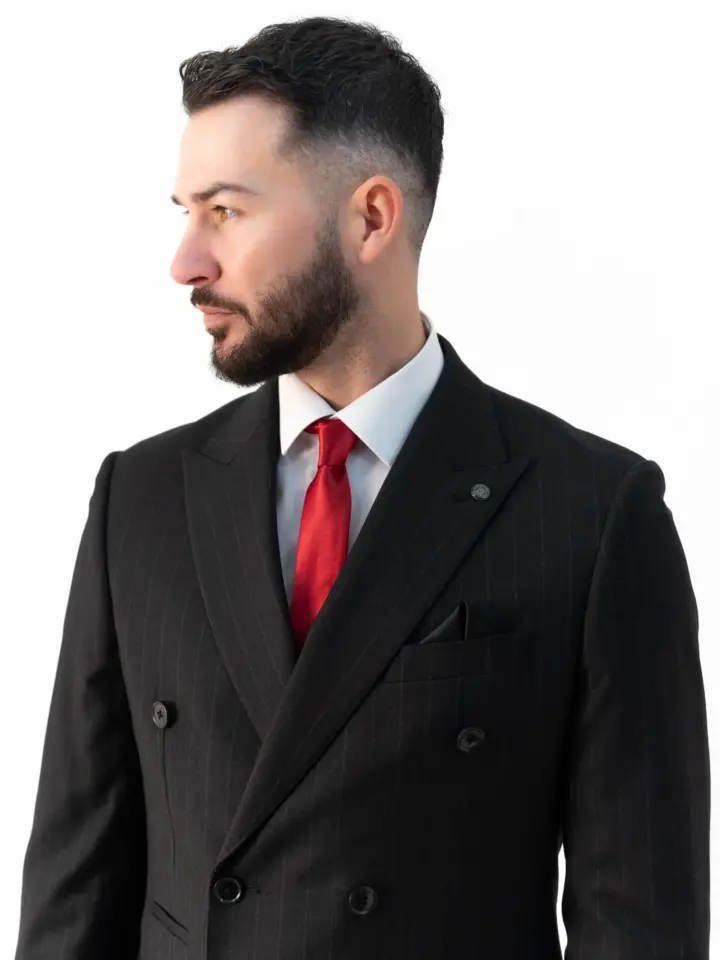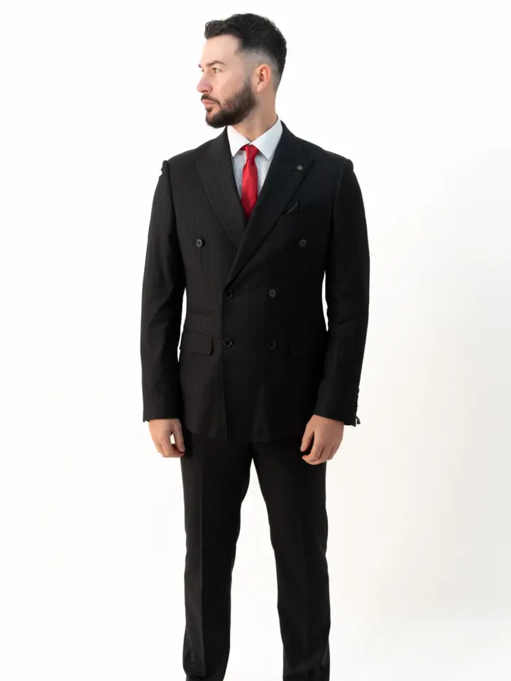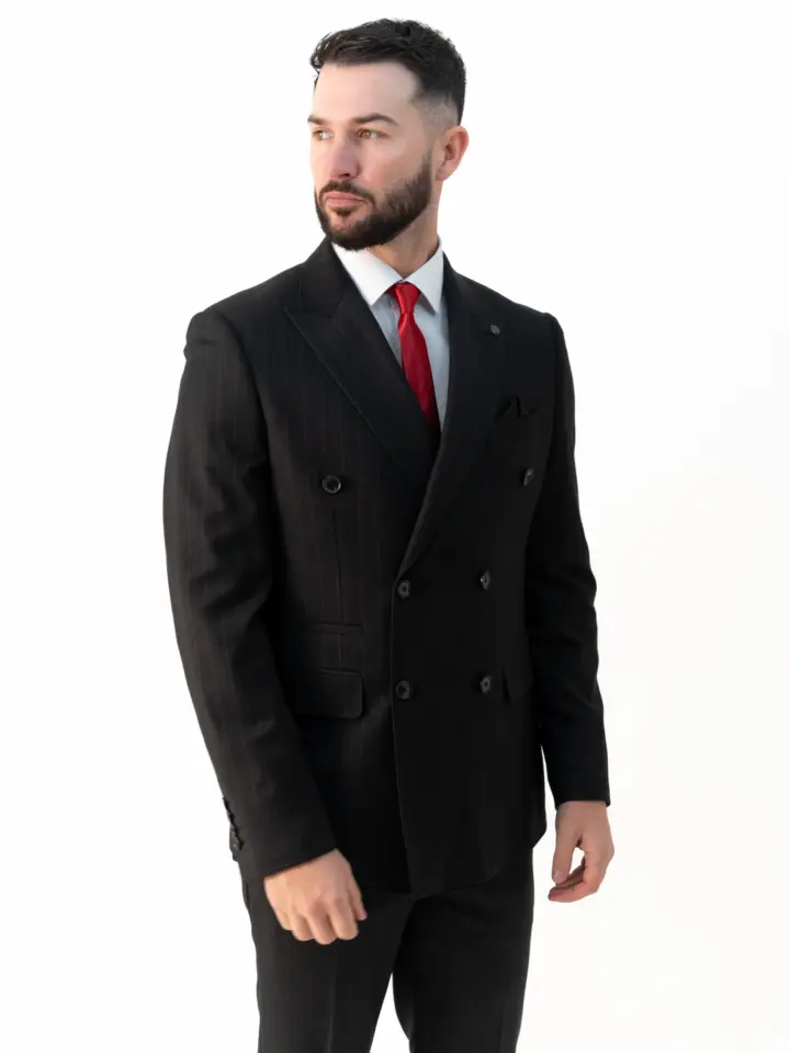 Connor – Black Pinstripe Double Breasted Two Piece Suit