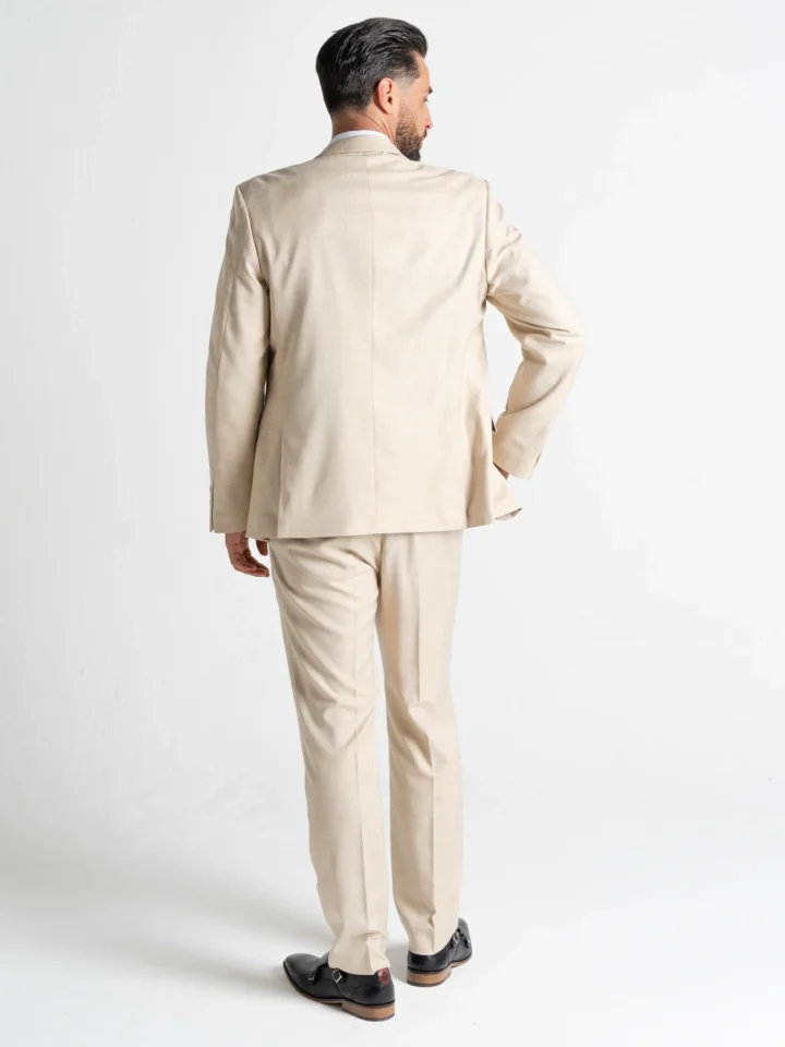 Crafted from premium cream fabric with a subtle sheen, this suit radiates warmth and versatility. Its soft, neutral tone provides a fresh and sophisticated alternative to traditional dark suits, making it an exceptional choice for weddings, formal daytime events, garden parties, and upscale social gatherings. The cream hue effortlessly pairs with a variety of shirt and accessory combinations, allowing you to customize your look to suit any occasion.