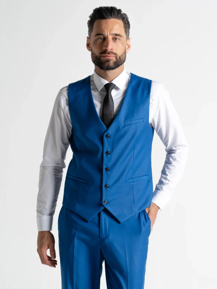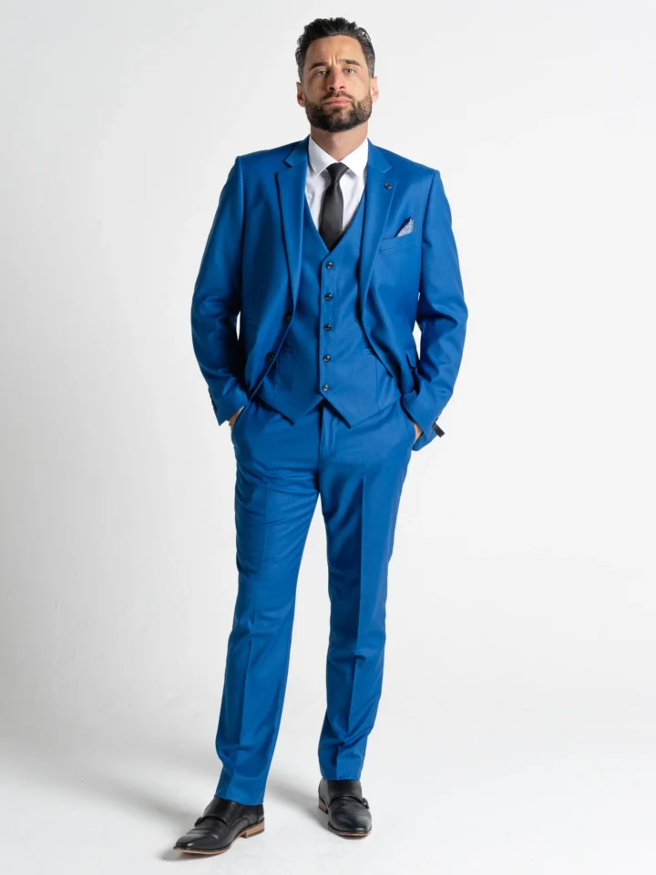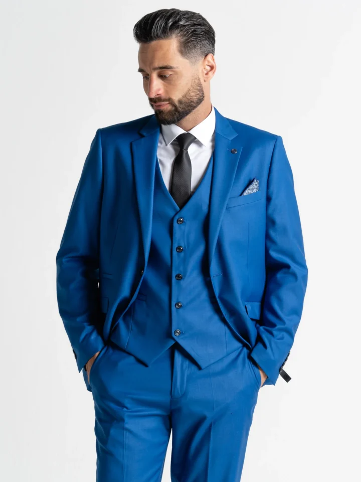 Make a refined yet distinctive statement with the Haris Cool Blue Three-Piece Suit — where modern tailoring meets fresh, contemporary style. Designed for a flattering slim fit, this suit is precision-cut to enhance your silhouette while ensuring all-day comfort.