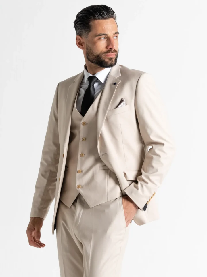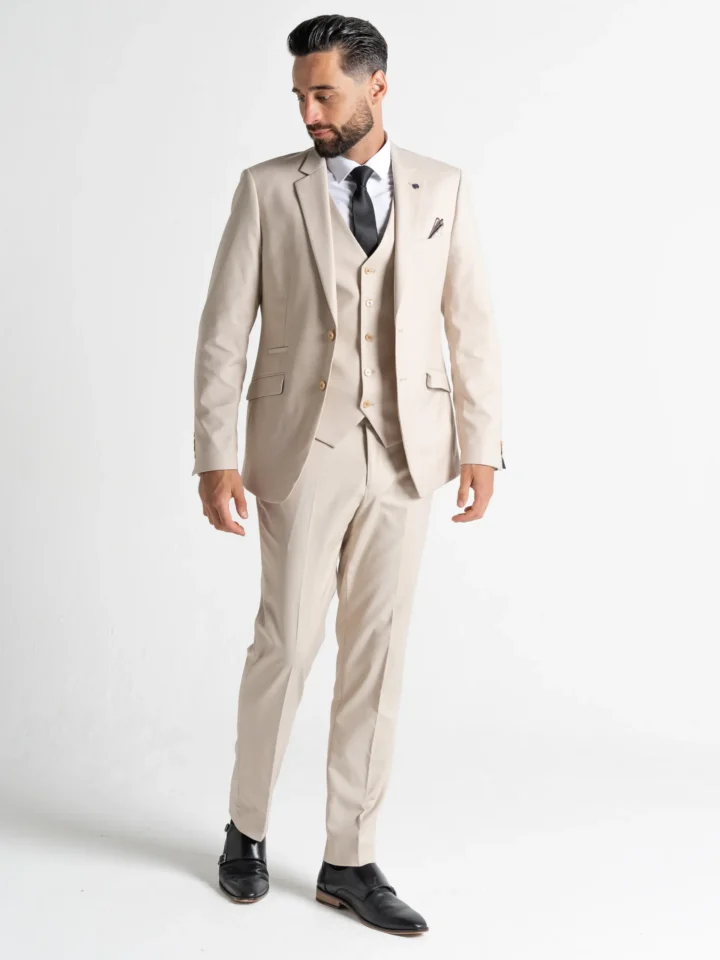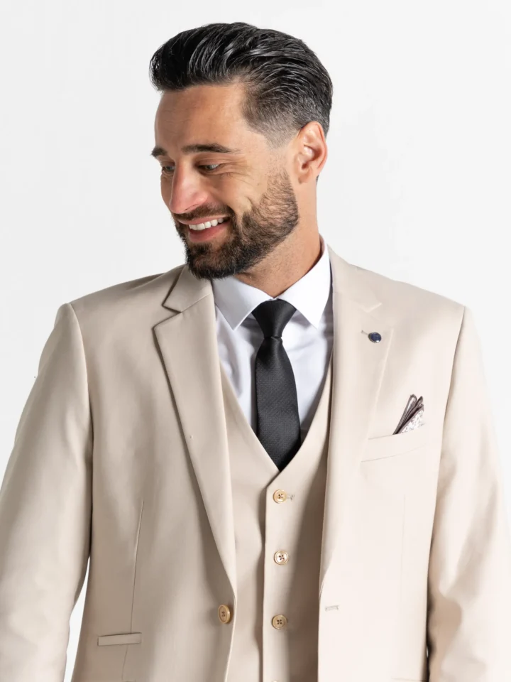 Made from premium, breathable fabric in a warm cream tone, the Haris suit is as versatile as it is elegant. Its neutral shade complements a variety of shirt and tie combinations, making it the perfect choice for weddings, formal gatherings, summer events, Proms or any occasion where effortless style is essential.