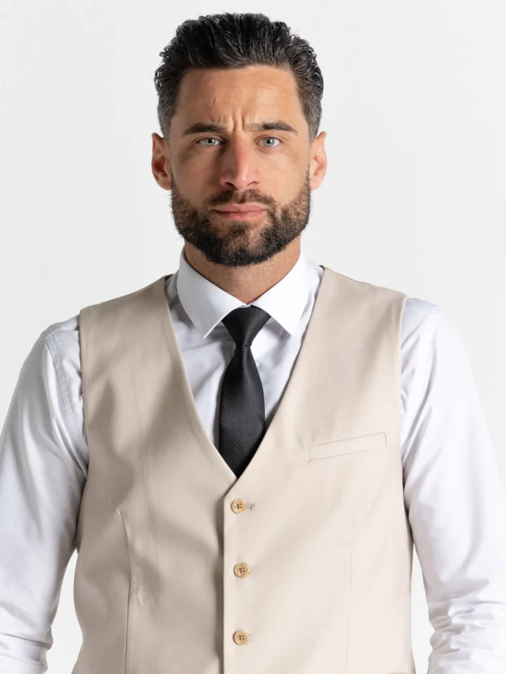 Step into refined sophistication with the Haris Cream Three-Piece Suit — a perfect blend of modern tailoring and timeless charm. Designed for a sleek slim fit, this suit is expertly crafted to flatter your silhouette while offering all-day comfort.