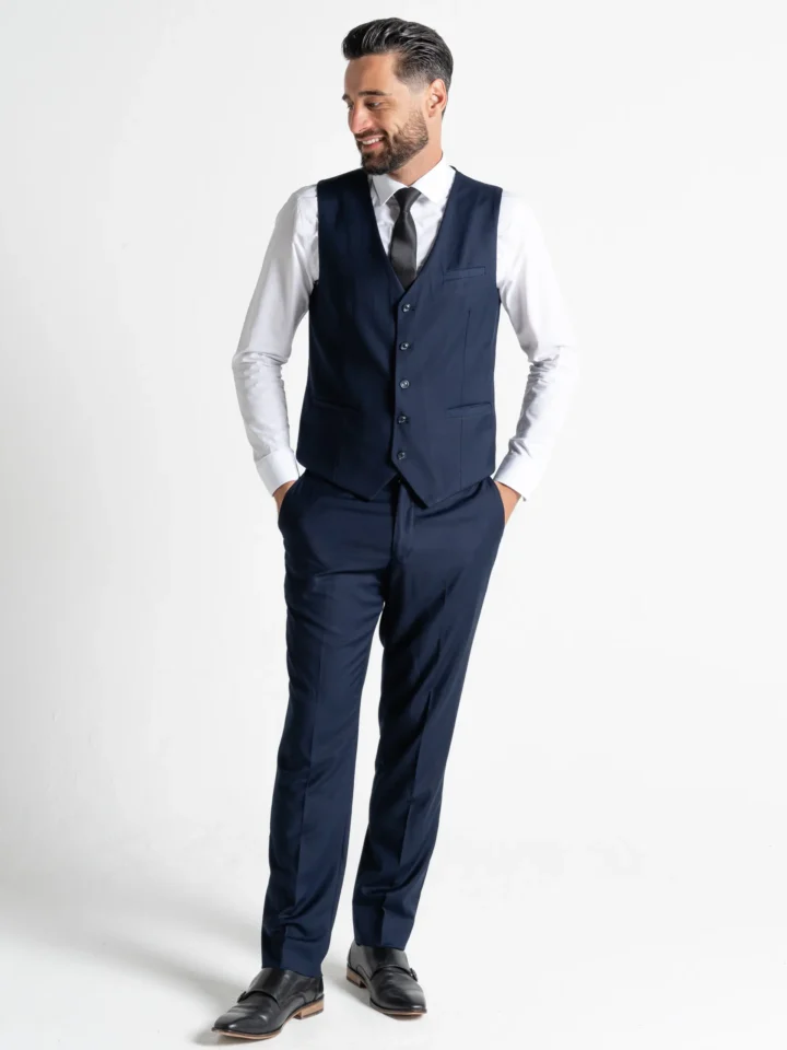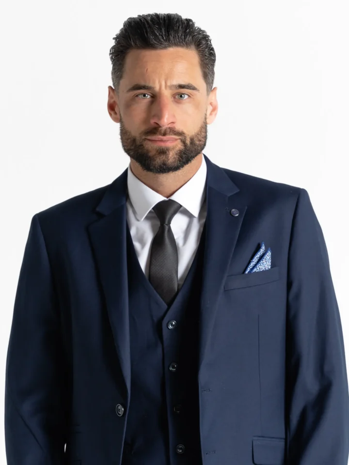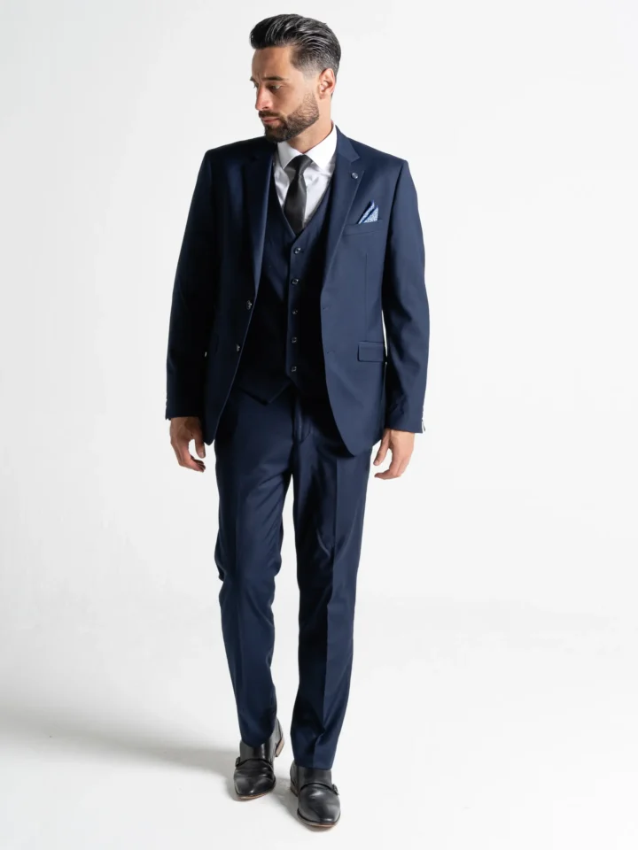 Crafted from premium, breathable fabric in a deep navy blue hue, this versatile ensemble works effortlessly for both day and evening occasions. Whether for business, weddings, or formal celebrations, its rich colour and precise tailoring ensure you always make a distinguished impression.