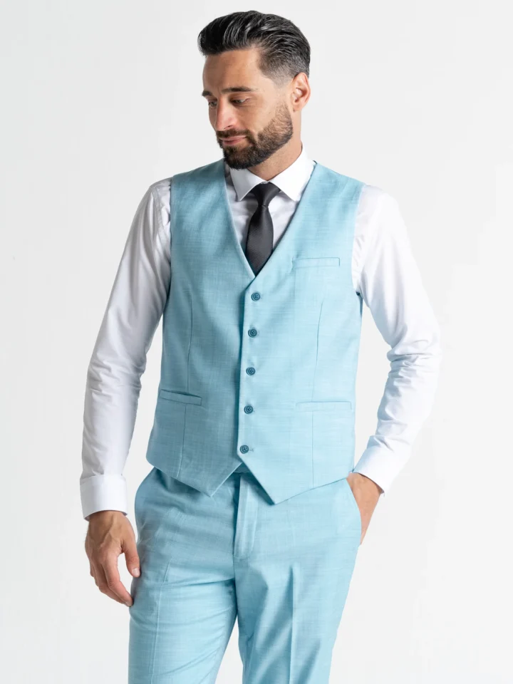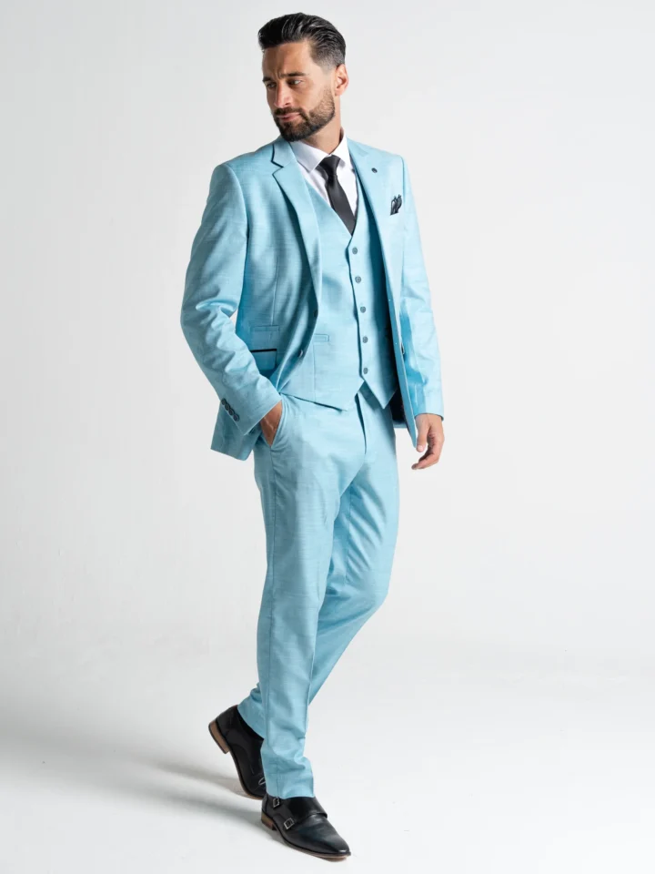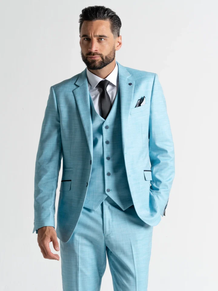 Make a confident and stylish impression with the Henry Aqua Three Piece Suit. Expertly tailored for a contemporary slim fit, this versatile suit combines timeless elegance with modern detailing. The structured jacket, complete with classic notch lapels, single-breasted closure, and practical internal pockets, pairs effortlessly with the refined waistcoat featuring a sleek button front and adjustable back strap. Tailored trousers complete the ensemble, crafted with precision for comfort and a sharp silhouette.