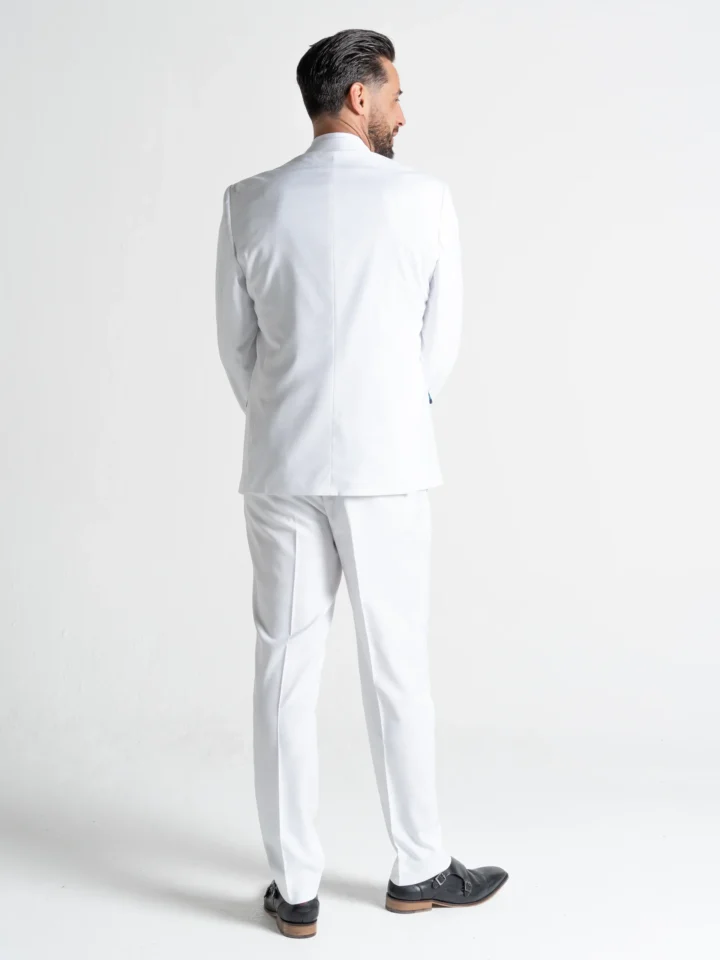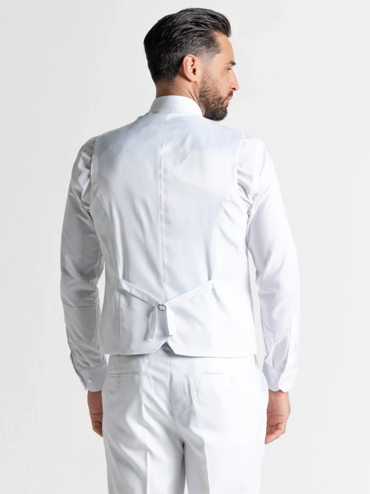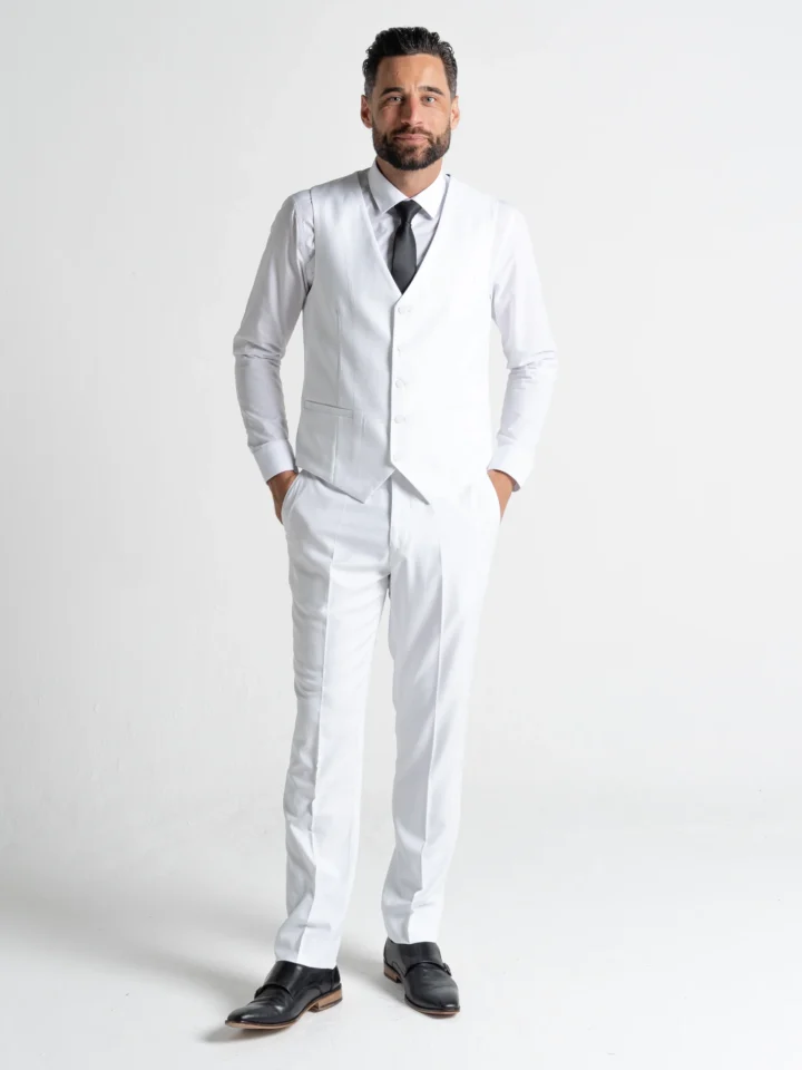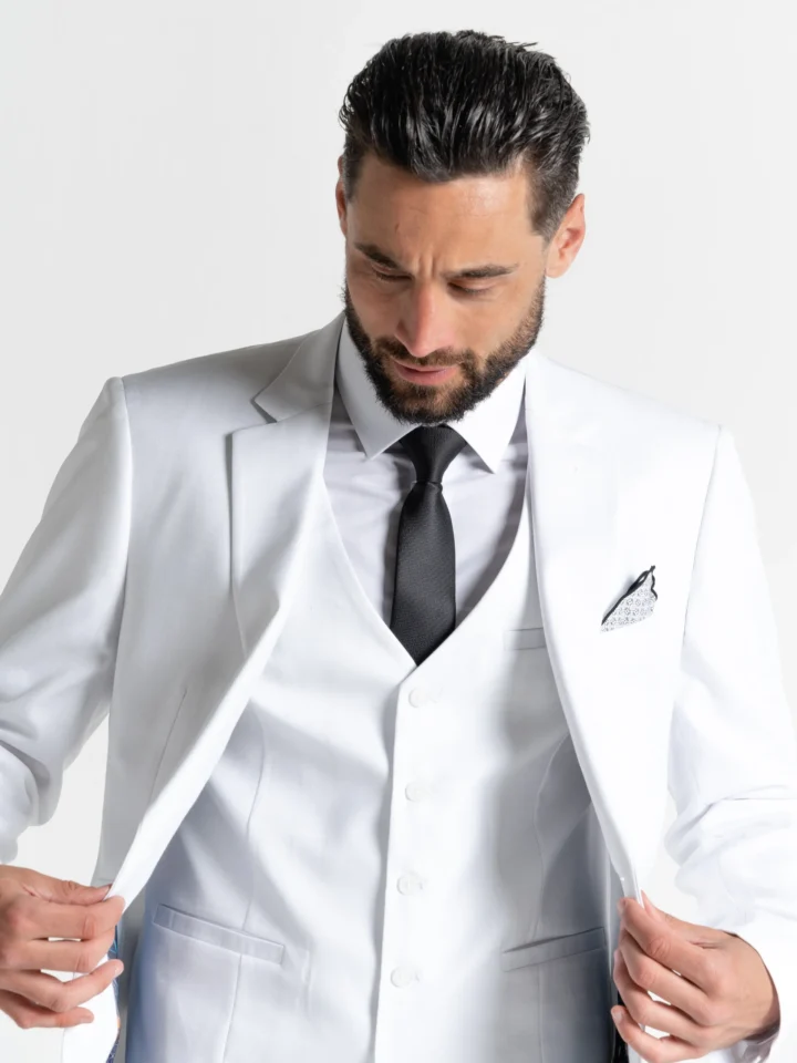 Make a confident and stylish impression with the Henry White Three Piece Suit. Expertly tailored for a contemporary slim fit, this versatile suit combines timeless elegance with modern detailing. The structured jacket, complete with classic notch lapels, single-breasted closure, and practical internal pockets, pairs effortlessly with the refined waistcoat featuring a sleek button front and adjustable back strap. Tailored trousers complete the ensemble, crafted with precision for comfort and a sharp silhouette.
