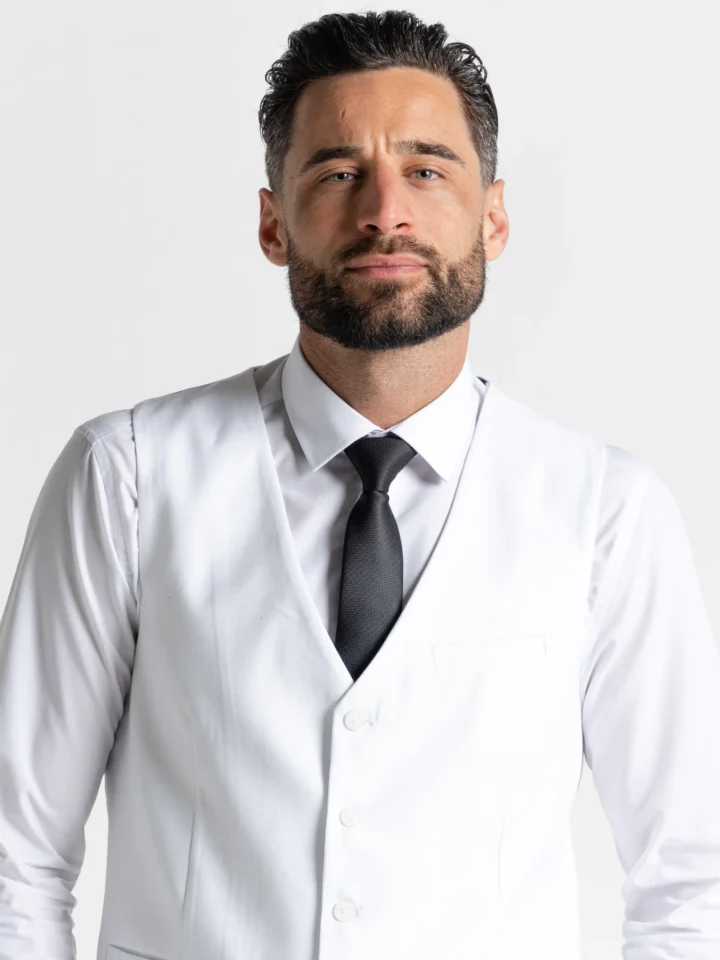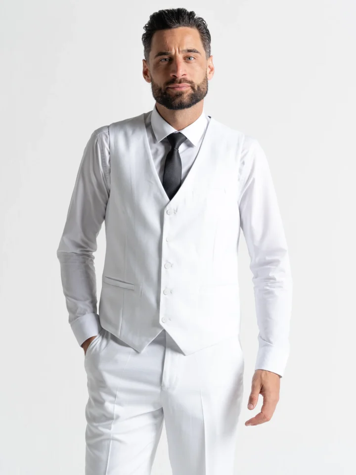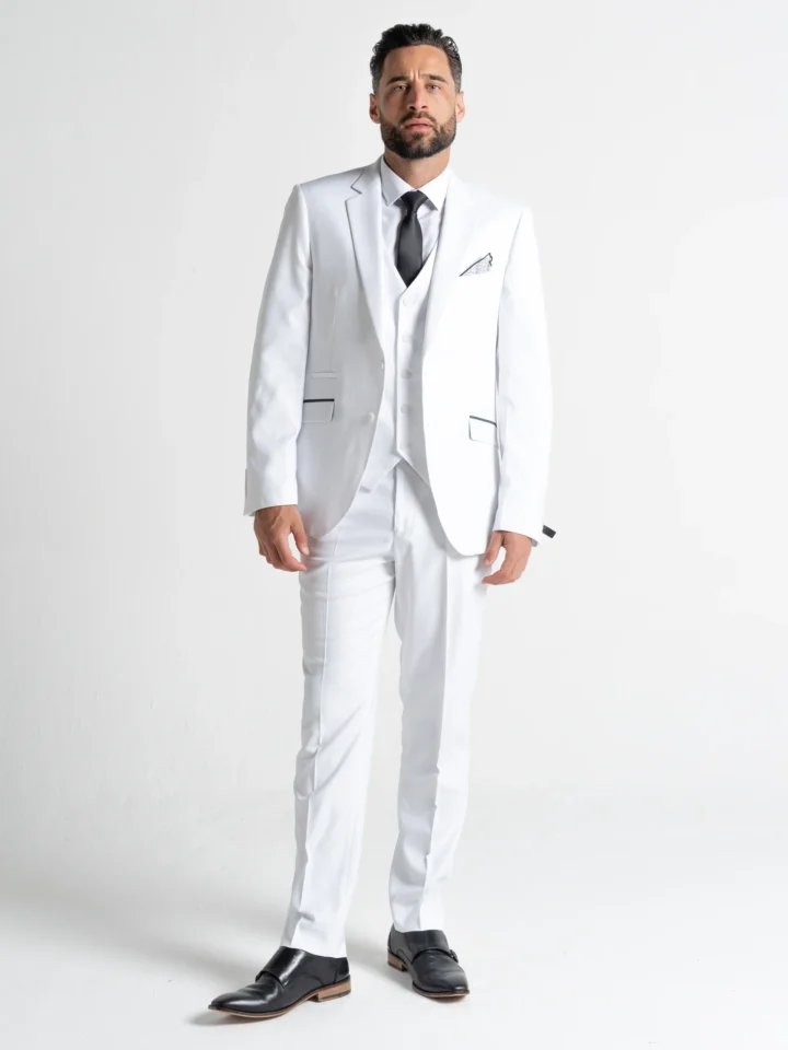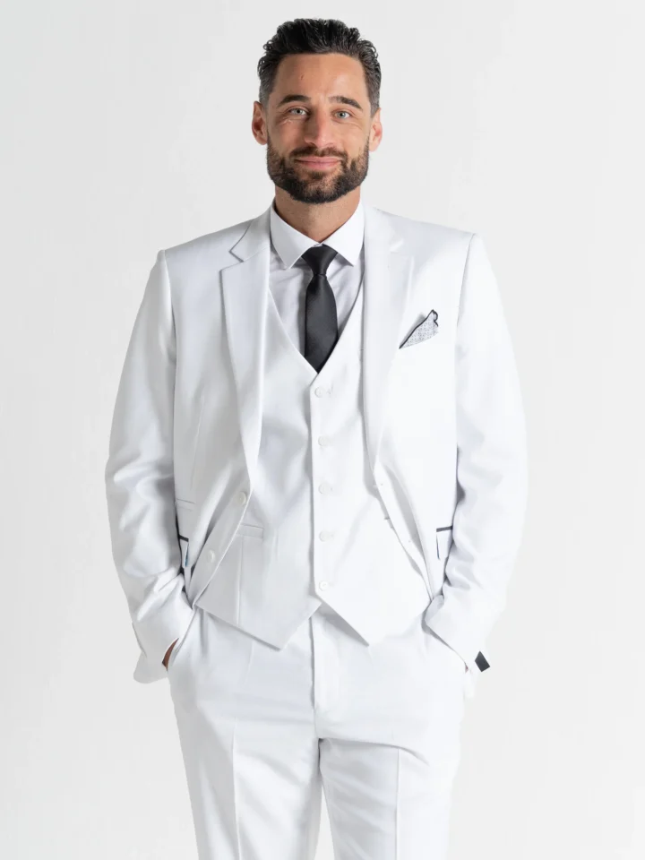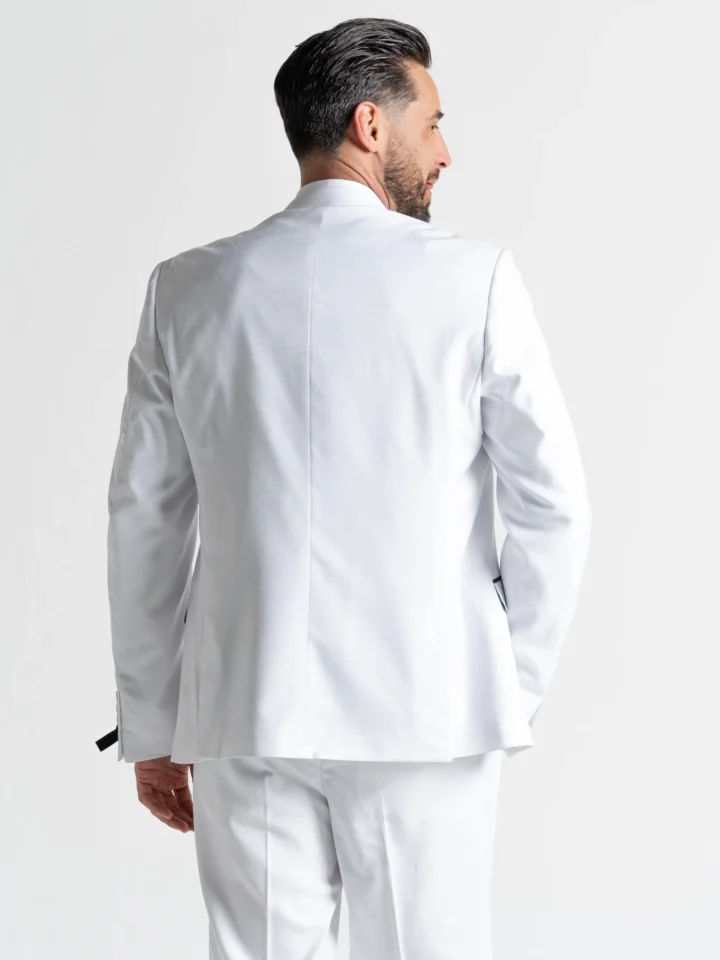Make a confident and stylish impression with the Henry White Three Piece Suit. Expertly tailored for a contemporary slim fit, this versatile suit combines timeless elegance with modern detailing. The structured jacket, complete with classic notch lapels, single-breasted closure, and practical internal pockets, pairs effortlessly with the refined waistcoat featuring a sleek button front and adjustable back strap. Tailored trousers complete the ensemble, crafted with precision for comfort and a sharp silhouette.