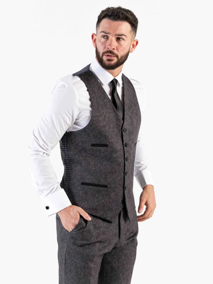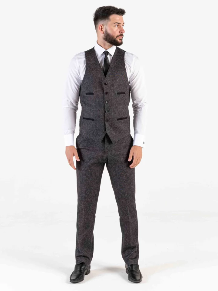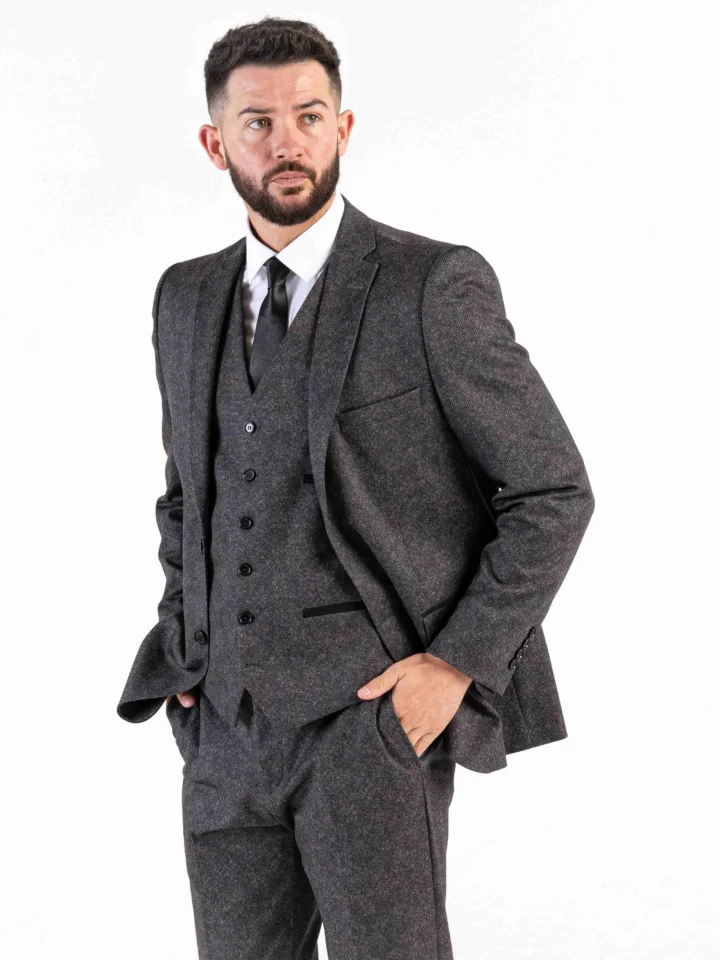 Herringbone – Dark Grey Three Piece Suit