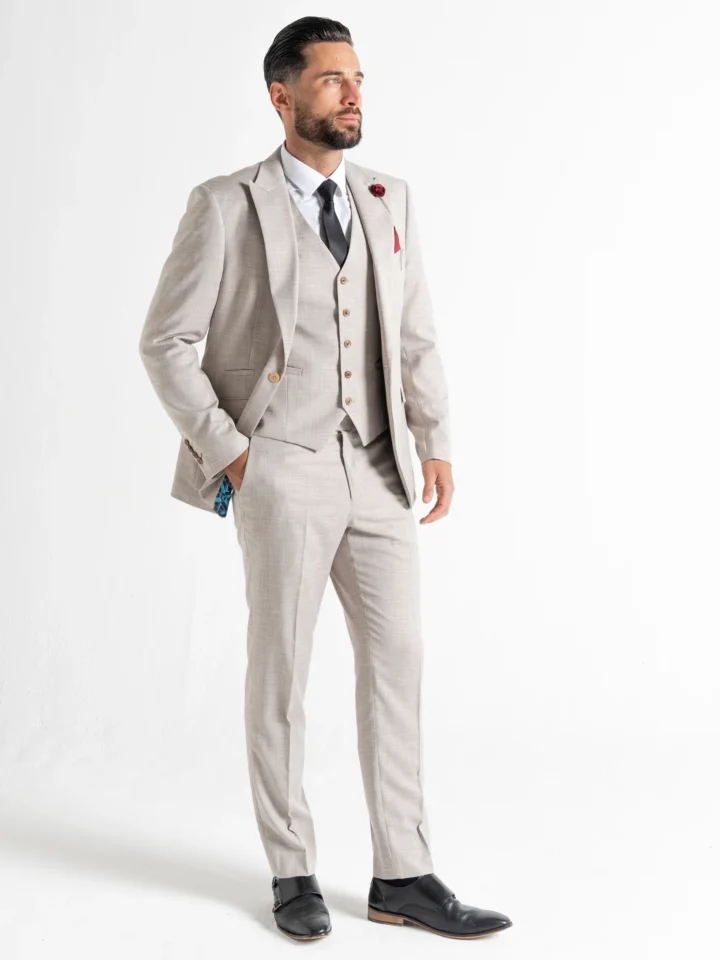 Finished with a complimentary pocket square, the Kensington suit is perfect for summer weddings, daytime events, and smart seasonal styling. The light tones make it easy to accessorise for different occasions.