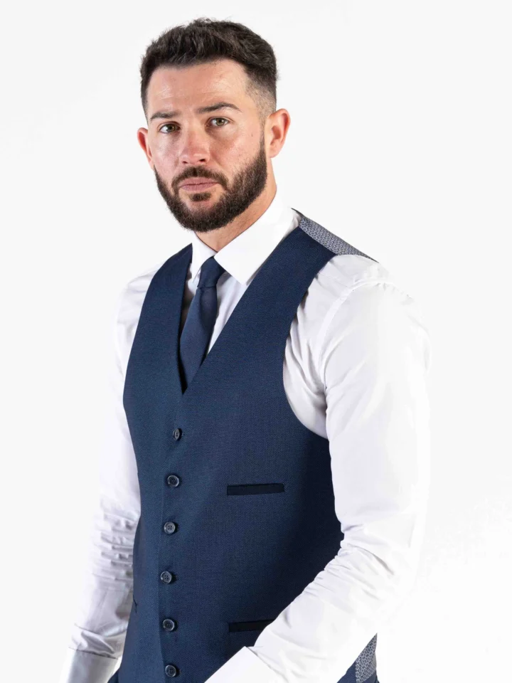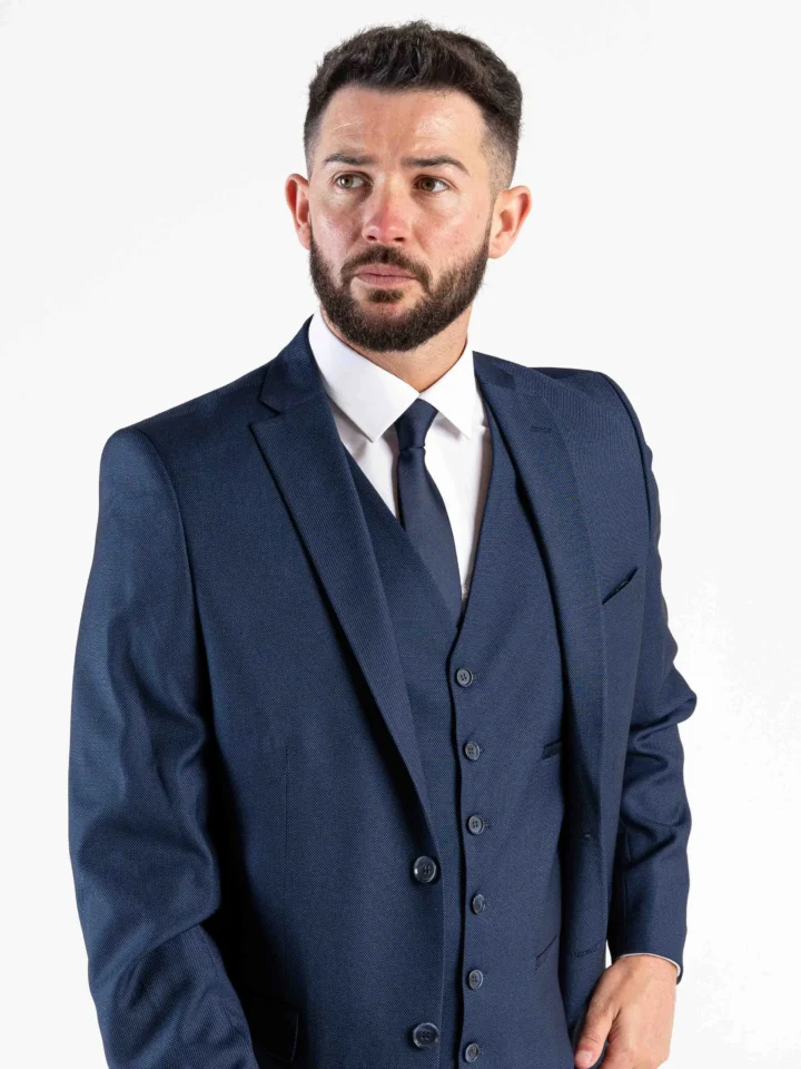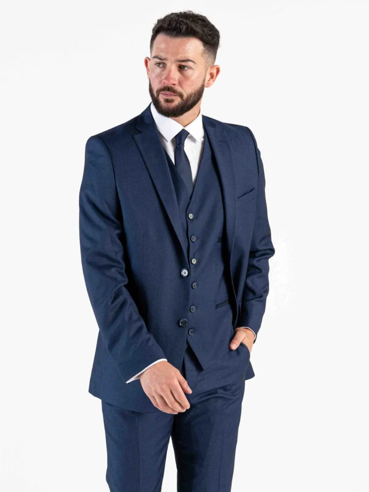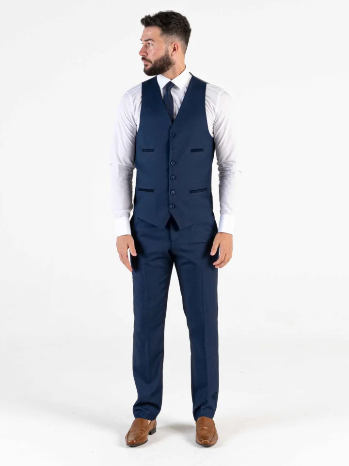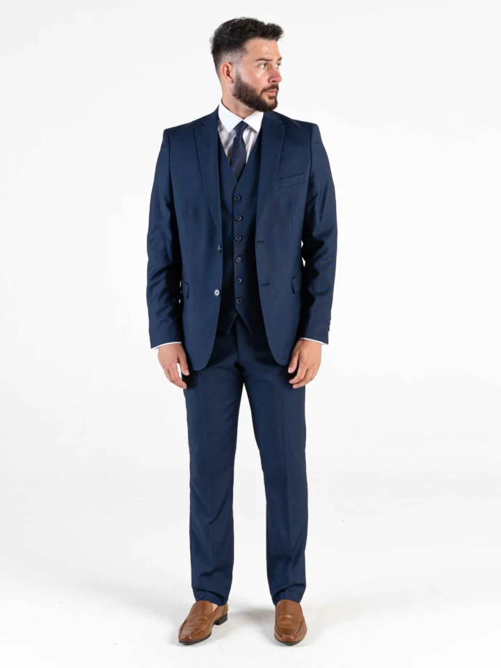 This tailored fit Oliver suit is a luxury wardrobe piece that is perfect for special events or your new go-to office look. The three piece comes in an opulent royal blue and a seamless classic tailored fit. Finished with a matching four welted waistcoat and royal blue tailored fit trousers. Pair with a matching blue tie for a refined look.